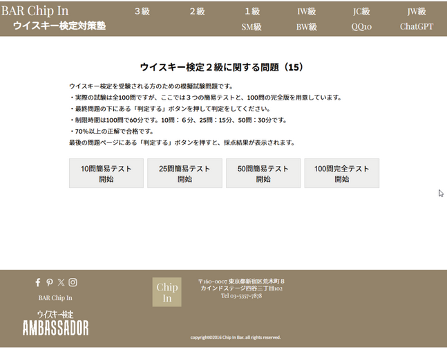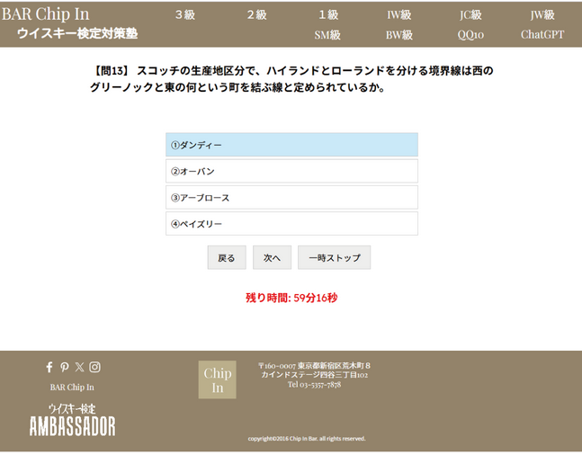 ウイスキー検定合格を目指した受験生向けの対策塾です。専用のアプリケーションを使ったテストを実施しています。