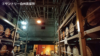 下の写真は白州蒸留所のラック式熟成庫