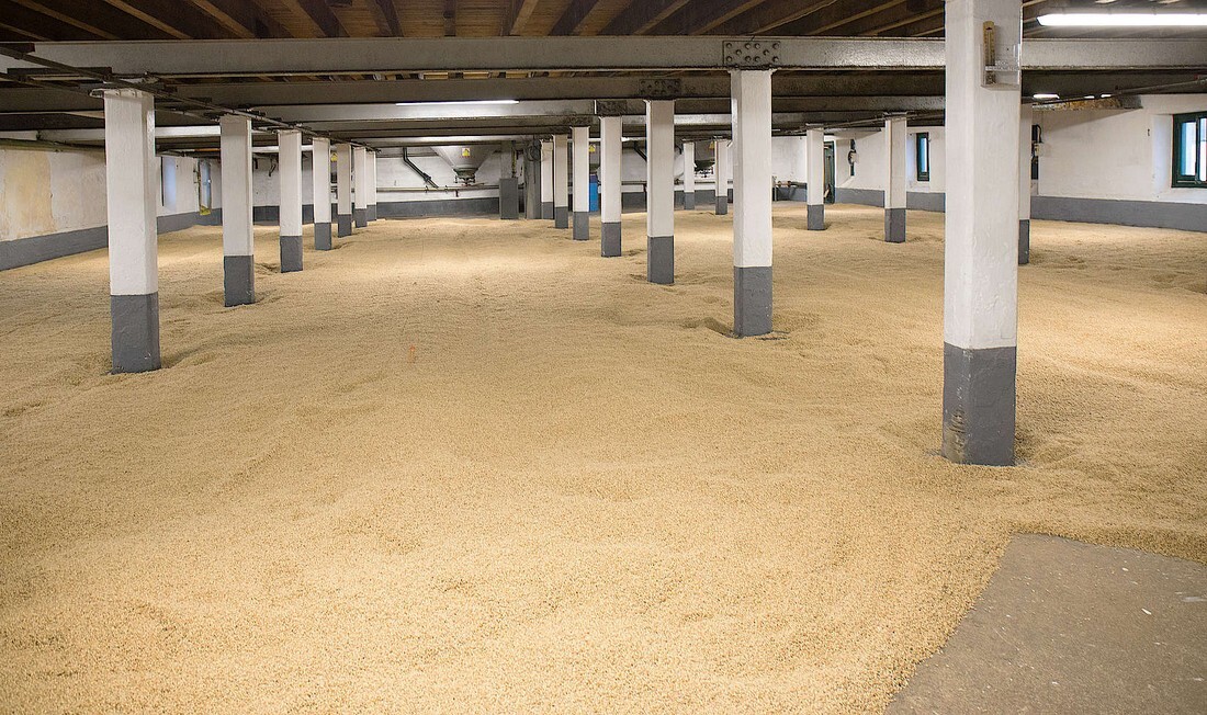写真は、ラフロイグ蒸留所のフロアモルティングの様子(出典:Whisky.com)